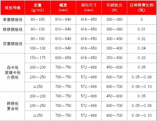 表1 凹印制版文件拉伸尺寸和紙張定量關(guān)系