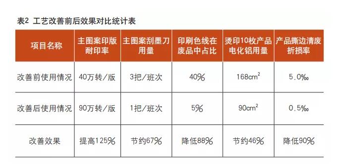 通過對(duì)比表2的數(shù)據(jù)可以看出,工藝改善在煙包印刷降本增效中的作用較大,效果明顯。工藝改善無處不在,我們?cè)谝院蟮纳a(chǎn)中需要更加注重細(xì)節(jié),學(xué)會(huì)善于觀察,深挖降耗潛能,積累技術(shù)經(jīng)驗(yàn),加大工藝改善力度,不斷提高發(fā)現(xiàn)問題和解決問題的能力,為降低生產(chǎn)成本、提高生產(chǎn)效率、增強(qiáng)企業(yè)盈利能力找到新的方法,提供新的思路。