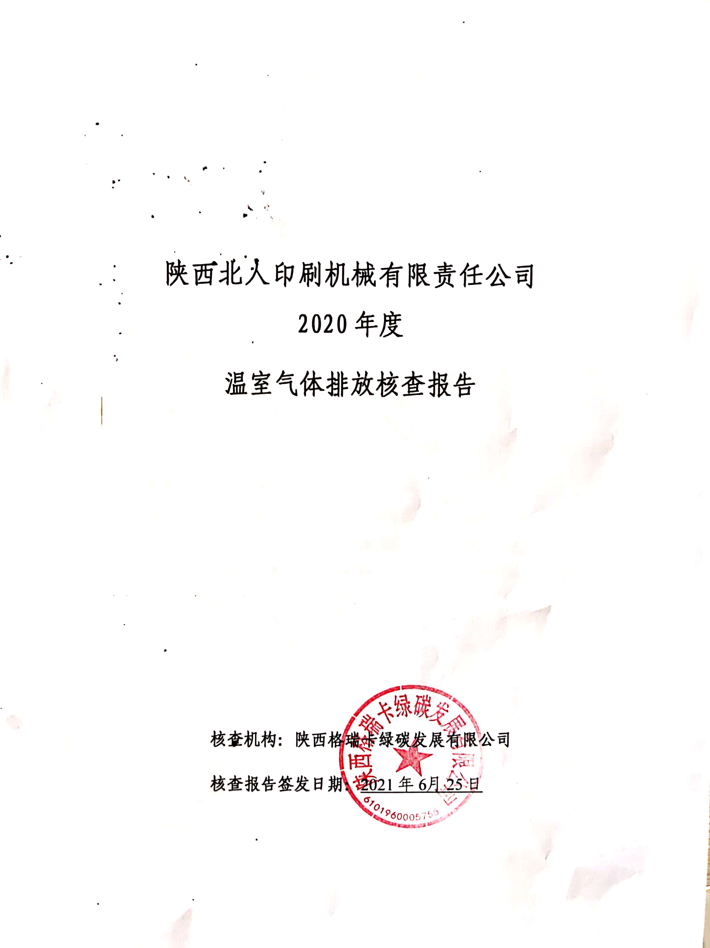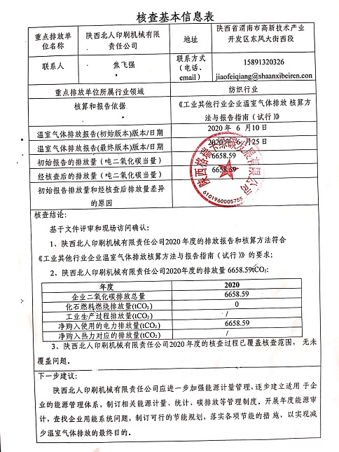 陜西北人印刷機(jī)械有限責(zé)任公司建設(shè)綠色工廠,現(xiàn)將第三方《溫室氣體排放核查報告》向社會各界公示,歡迎監(jiān)督。