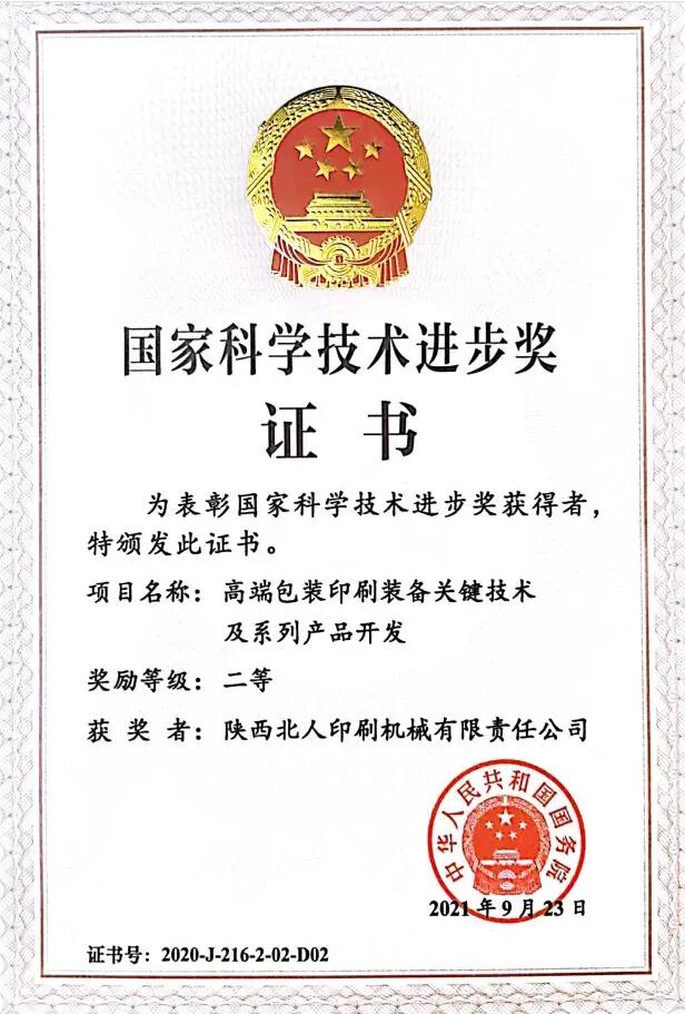 今天(2021年11月3日),2020年度國家科學(xué)技術(shù)獎評選結(jié)果正式揭曉。國家科學(xué)技術(shù)獎包括國家高科學(xué)技術(shù)獎、國家自然科學(xué)獎、國家技術(shù)發(fā)明獎、國家科學(xué)技術(shù)進步獎和中華人民共和國國際科學(xué)技術(shù)合作獎五大獎項。陜西北人印刷機械有限責(zé)任公司與西安交通大學(xué)、北京印刷學(xué)院等單位聯(lián)合申報項目“高端包裝印刷裝備關(guān)鍵技術(shù)及系列產(chǎn)品開發(fā)”榮獲國家科學(xué)技術(shù)進步二等獎。