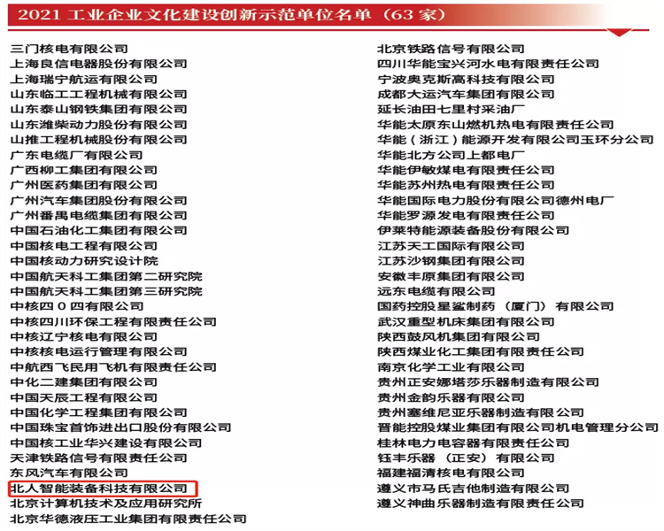 11月11日,中國工業(yè)新聞網(wǎng)及中國工業(yè)報刊登了“2021工業(yè)企業(yè)文化建設(shè)創(chuàng)新示范單位及創(chuàng)新人物、成果”獲獎名單,北人智能被評為“2021工業(yè)企業(yè)文化建設(shè)創(chuàng)新示范單位”。評選活動的開展旨在挖掘和培育我國工業(yè)企業(yè)文化建設(shè)典型,引領(lǐng)企業(yè)高質(zhì)量發(fā)展。