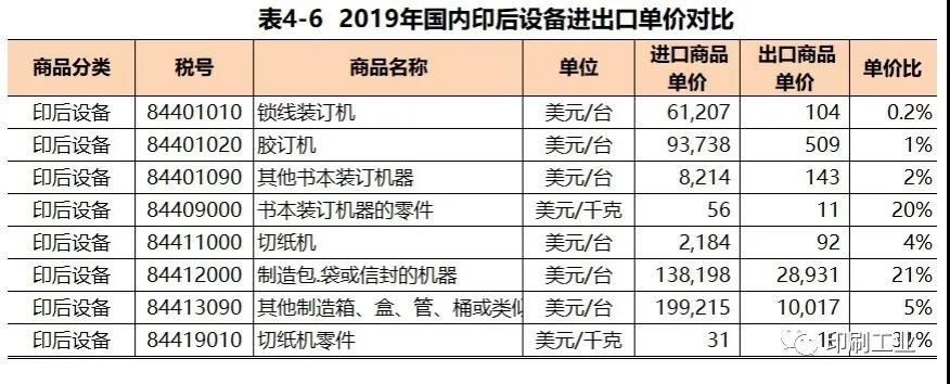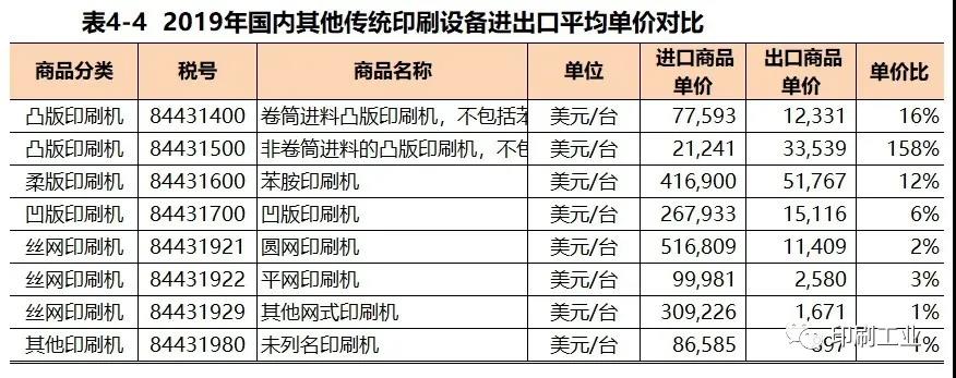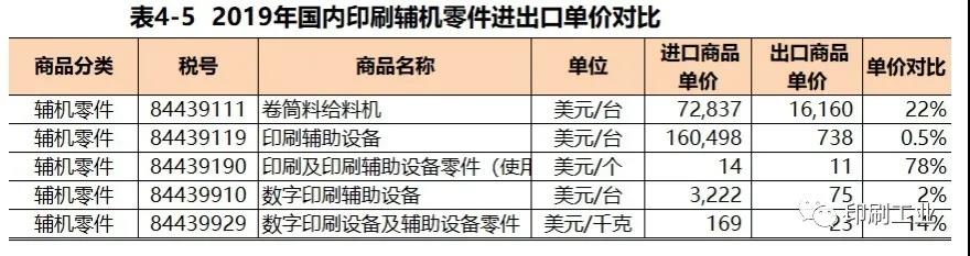 印刷輔機(jī)設(shè)備進(jìn)口50臺(平均單價16.05萬美元)、出口4.85萬臺(平均單價738美元),進(jìn)出口單價比0.5%;